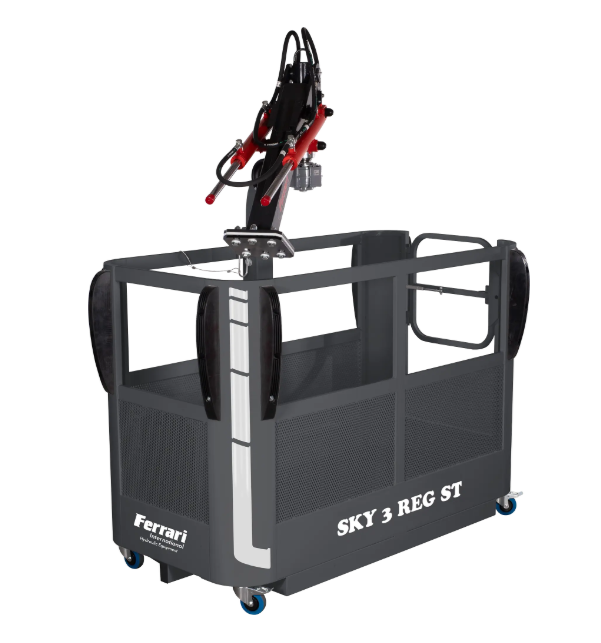 Ferrarin mallistossa pyörivät nostokorit tunnetaan SKY-sarjana. Näistä erityisesti SKY 3 300 Reg on suunniteltu isommille kappaletavaranostureille ja jopa kolmen hengen samanaikaiseen nostoon. SKY 3 300 Reg on kolmen hengen pyörivä henkilökori, jossa on jatkuva 360° kääntömoottori sekä mekaanisesti säädettävä nostovarsi (ns. ”Reg” = regolabile, säädettävä) korin korkeussäätöä varten. Tämän ansiosta korin ripustuspisteen korkeutta tai etäisyyttä nosturin puomiin nähden voidaan muuttaa noin 63 cm säteellä, mikä auttaa välttämään esteitä ja saamaan kori oikealle korkeudelle. SKY 3 300 Reg -korin maksimikuorma on 300 kg ja siinä mahtuu työskentelemään jopa kolme henkilöä samanaikaisesti. Kori itsessään on järeästi rakennettu, painaen noin 204 kg, joten sen käyttö edellyttää riittävän kantokykyistä nosturia (yleensä isommat 30–100 tm luokan kuormausnosturit). Korin sisämitat ovat noin 1800 mm leveys ja 900 mm syvyys, eli tilaa on reilusti työskentelyyn ja mukana voidaan nostaa myös tarvittavia työkaluja tai materiaaleja.